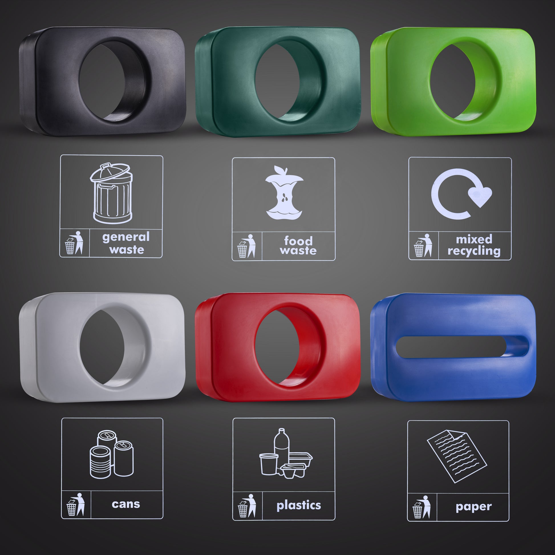 Advanced Sorting System: Features a choice of six colour-coded inserts with waste-specific apertures to provide clear and intuitive guidance: